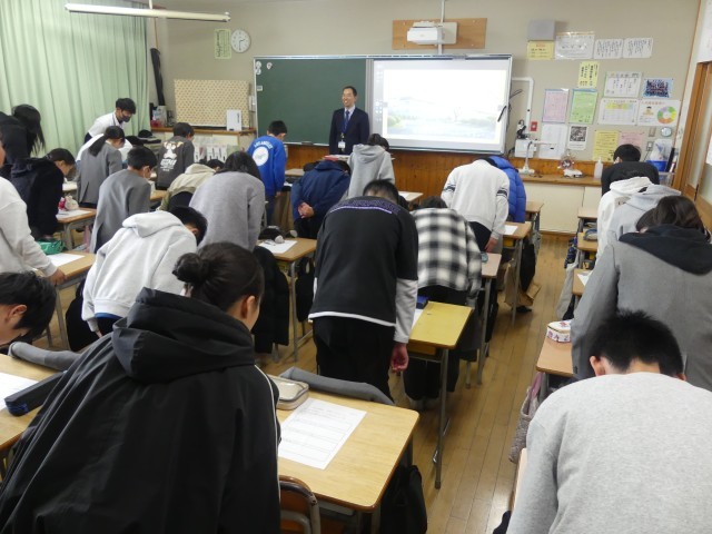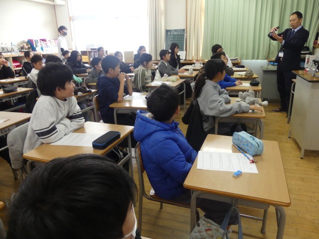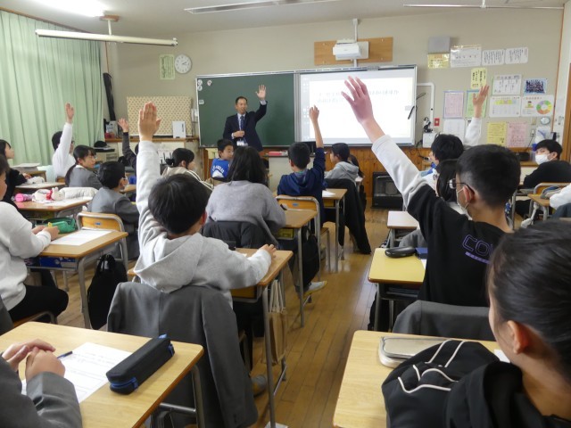 授業の後半には、子どもたちから手が上がり、質問をしました。長尾先生は、一人一人の質問に優しく丁寧に答えてくださいました。最初は少し不安そうだった表情が、長尾先生との対話を通して、徐々に「早く中学校に行ってみたい!」というワクワクした表情に変わっていくのが印象的でした。授業の最後には中学校で実践している「先言後礼」のあいさつをしました。長尾先生の明るくパワフルなお話のおかげで、中学校がぐっと身近なものになったようです。 先輩たちと一緒に活動できる日が、今から待ち遠しいです。長尾先生、貴重なお話をありがとうございました!