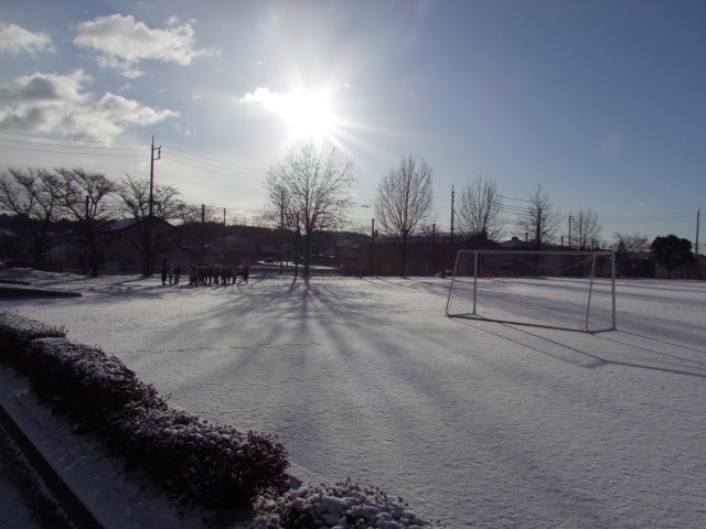 今朝、校庭は一面真っ白な雪に包まれました。