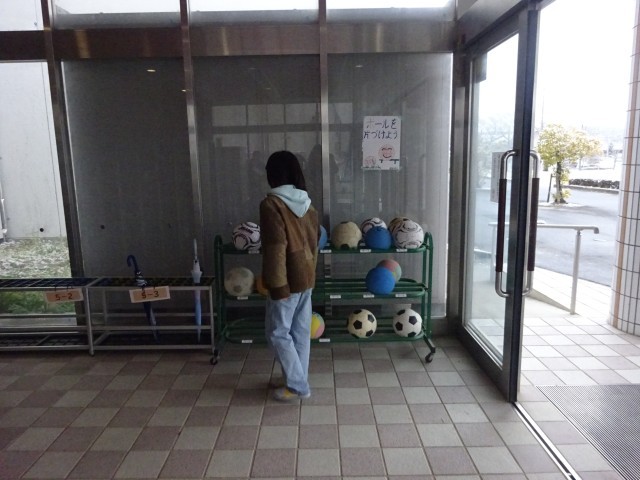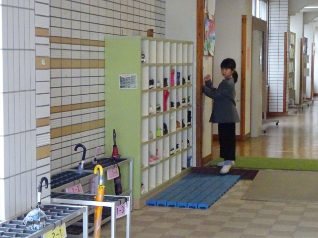 学校を歩いてみると、素敵な光景にたくさん出会います。1年生の下駄箱を丁寧にチェックしている人。