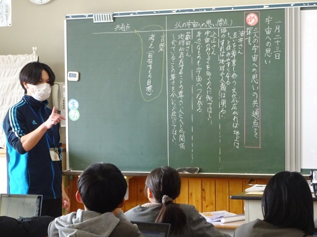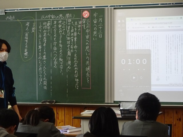 現在、6年生は「宇宙への思い」という単元で、複数の筆者の文章を読み比べ、それぞれの考え方の共通点や違いを整理する学習に取り組んでいます。