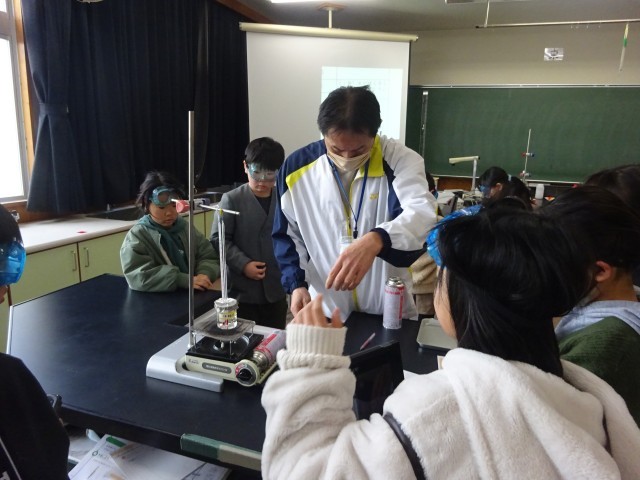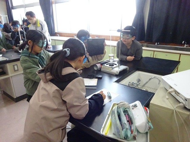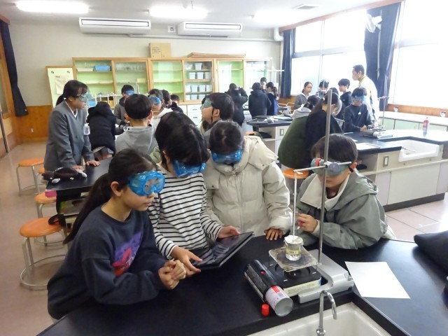 4年生の理科では、現在「物のあたたまり方」について学習しています。今日は、金属や水のあたたまり方の予想を確かめるため、各班で実験を行いました。子どもたちは、安全のために保護メガネをしっかり着用し、真剣な表情で実験に臨んでいました。ビーカーの中の水がどのようにあたたまっていくのか、試験管の中の様子に変化はないか、一瞬の変化も見逃さないよう集中していました。