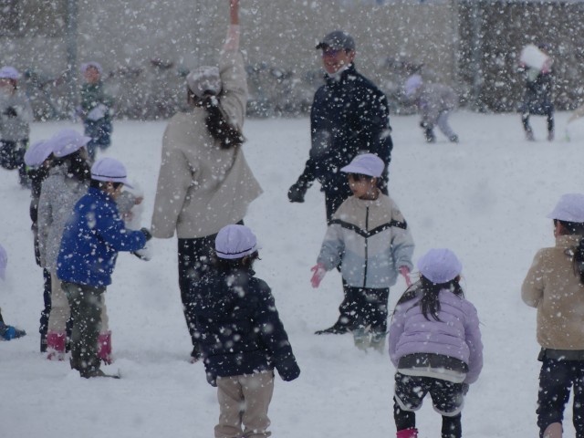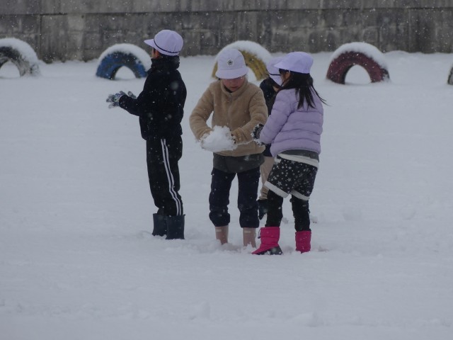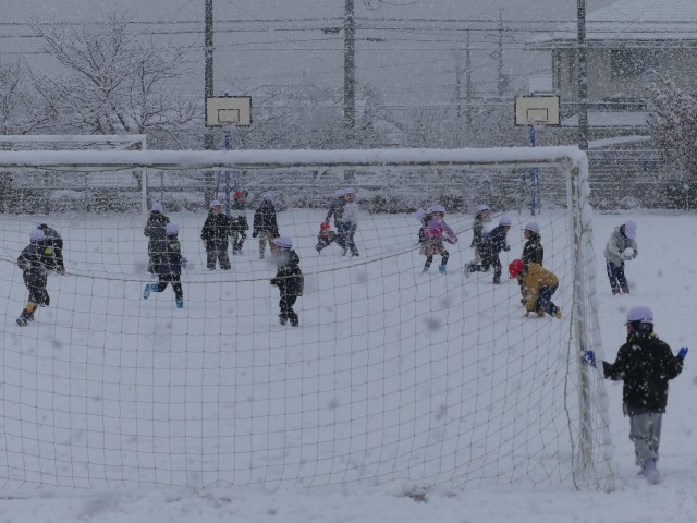 雪まみれになりながら遊ぶ子どもたちの笑顔で、運動場がパッと明るくなりました。冷たくなった手を赤くしながらも、「もっと遊びたい!」と話す姿に、子どもは風の子だなと改めて感心させられた一日でした。