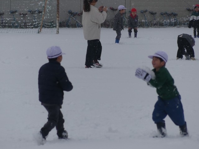 (一宮小)1年生:雪遊びに大興奮!