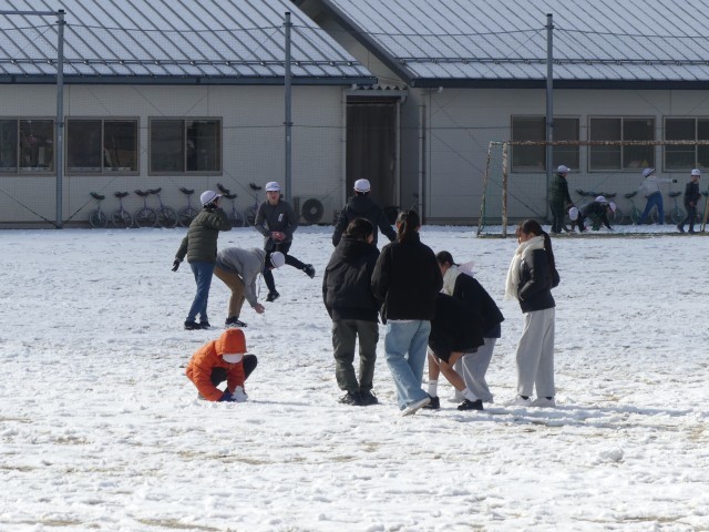 降った雪がまだ残る運動場。今日の20分休みは、寒さを吹き飛ばすような子どもたちの元気な声が響き渡りました。運動場一面に広がる真っ白な雪に、子どもたちは大興奮。