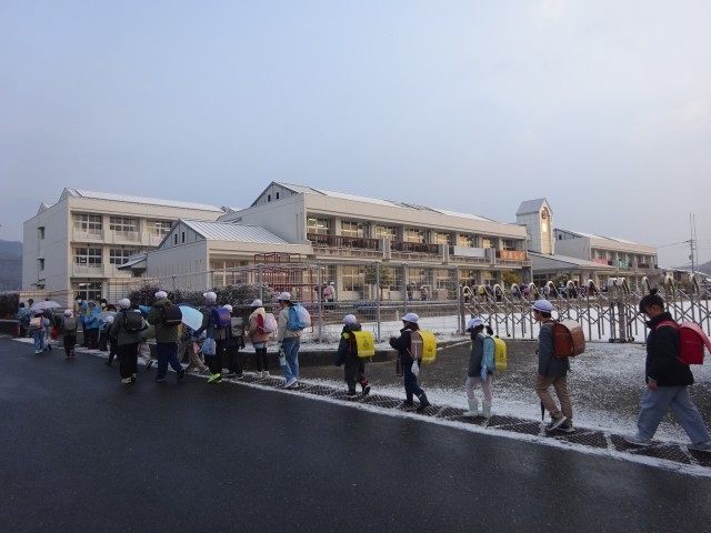 今朝は景色が白く染まるほどの雪が降りました。吐く息も白くなる厳しい寒さでしたが、本校の校門付近はとても温かい空気に包まれていました。今日は地域の民生委員さんによる「あいさつ運動」の日です。背中にランドセルを背負い、一歩一歩踏みしめるように登校してくる子どもたちに、委員の皆様が優しく声をかけてくださいます。「寒いね、気をつけてね」「おはよう!」