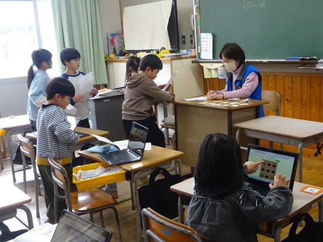教室のあちこちでは、支援員の方々が子どもたちの隣に座り、「今の惜しかったね!」「すごい、正解!」と優しく声をかけてくださっています。一人ひとりの進度に合わせて丁寧にサポートしていただくことで、子どもたちの意欲もさらに高まっているようです。九九の完全定着を目指し、地域の方々と共に、これからも「わくわく」しながら学習を進めてまいります。