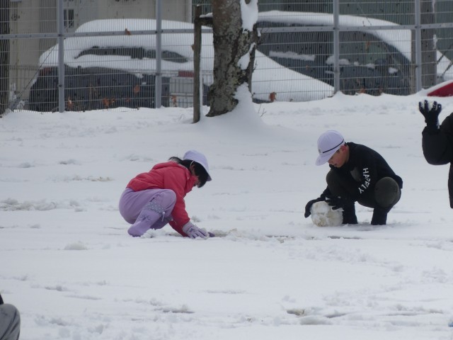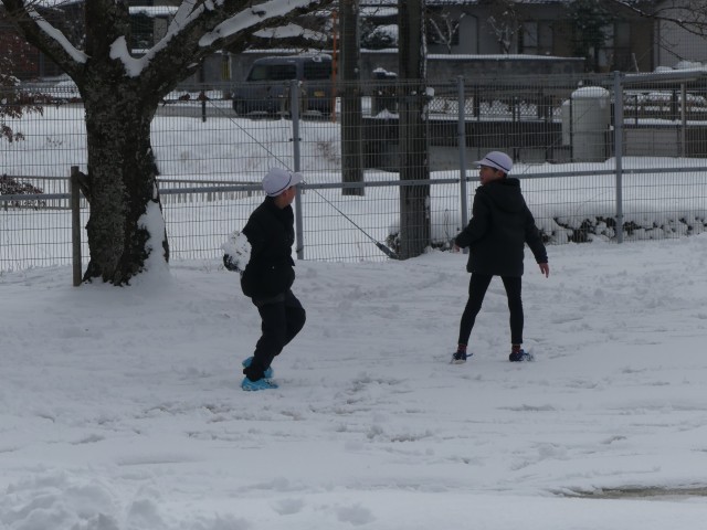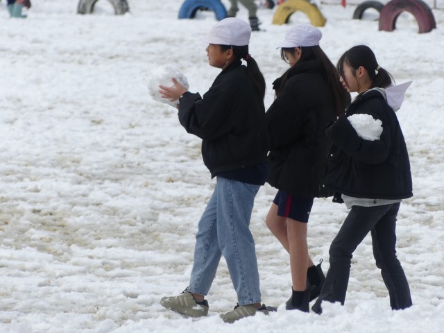 (一宮小)真っ白な校庭に歓声! 昼休みの雪遊び
