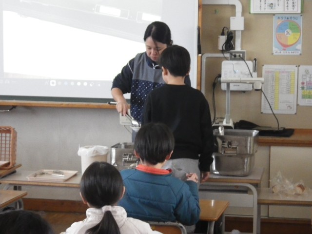 給食の時間には、配膳台を囲んで先生と一緒に準備をする姿や、おいしそうにパンやサラダを頬張る子どもたちの笑顔があふれていました。
