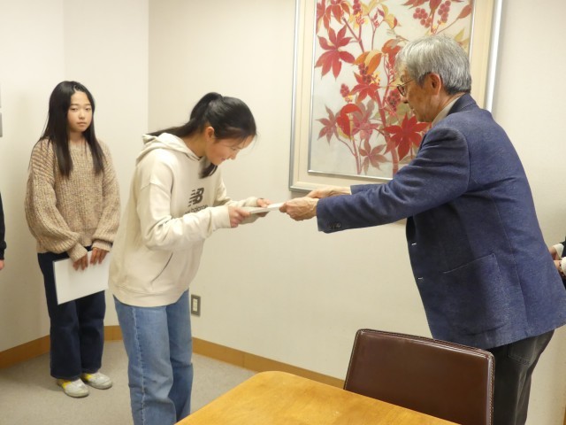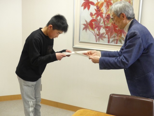本日、校長室にて素敵な表彰式が行われました。表彰されたのは、本校の6年生4名です。