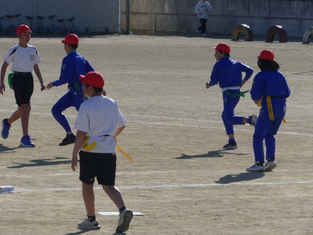 6年生の体育では「フラッグフットボール」に取り組んでいます。