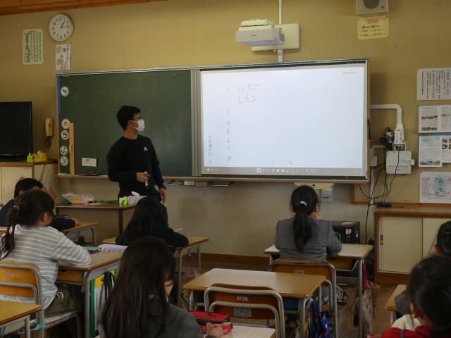 「くだもの」です。児童たちはカードに自分の好きな果物の名前を思い思いに書き込み、準備万端で放送を待ちました。大会の進行を務めたのは文化委員会の児童たちです。放送室のマイクを通して、一つずつ丁寧に果物の名前を発表していきました。