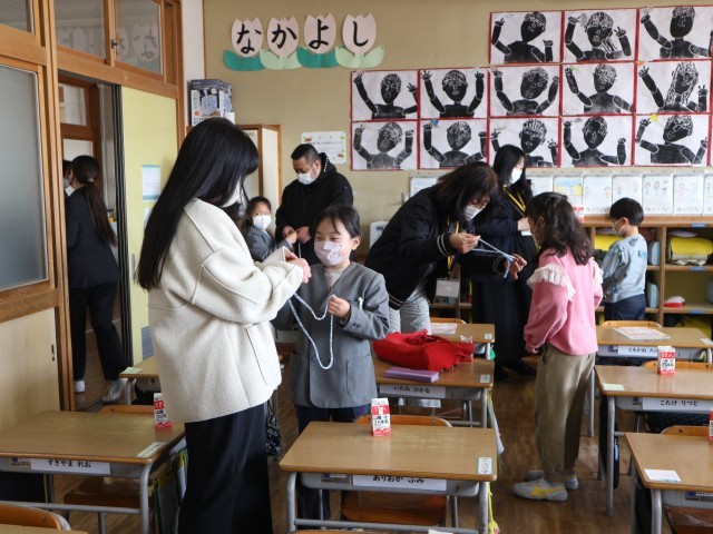 ハート型のカードには、感謝の気持ちや「こんなことができるようになったよ」という誇らしい思いがびっしりと綴られています。カードを受け取った保護者の皆様と子どもたちが、笑顔で見つめ合ったり、親子で一緒にあやとりを楽しんだりと、教室中が温かな空気に包まれた素敵なひとときとなりました。保護者の皆様、温かな見守りと応援をありがとうございました。1年生としての生活もあと少しですが、最後まで子どもたちの歩みを支えてまいります。