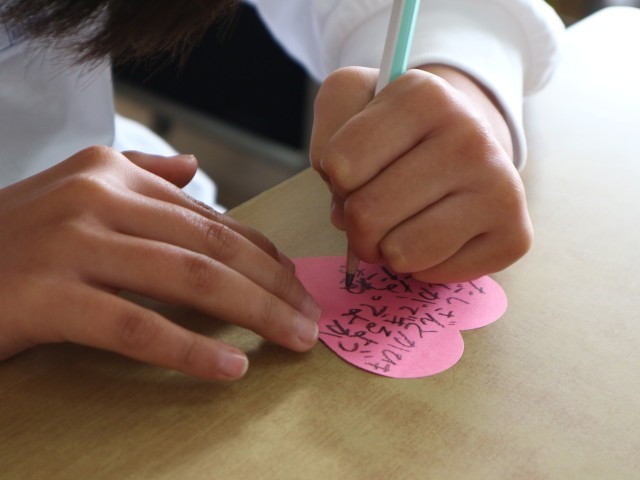 発表のあとは、子どもたちが心を込めて手書きしたメッセージカードを保護者の方へ手渡しました。