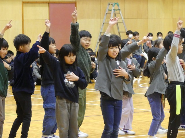 2年生:キレキレのダンス&一宮愛の「あいうえお作文」2年生は、リズムに乗った迫力あるダンスを披露。さらに、一宮への愛を込めた**「あいうえお作文」の一宮バージョン**で、6年生への感謝をメッセージに乗せて伝えました。工夫を凝らした言葉の一つひとつが、6年生の胸に届いたはずです。