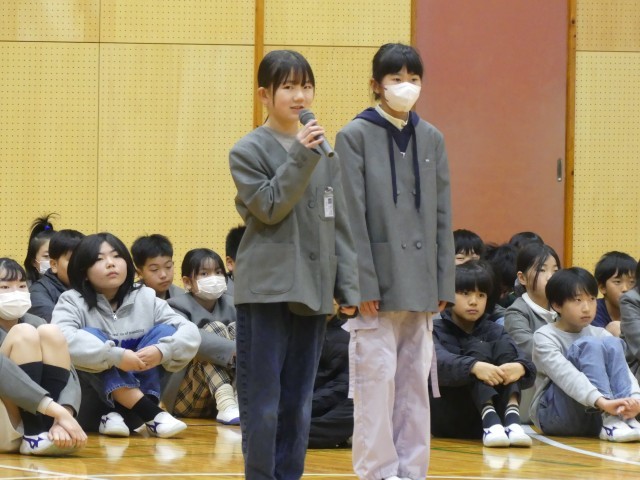 「6年生の皆さん、今まで本当にありがとうございました」と心からの感謝を伝えるとともに、「次は自分たちが、一宮小学校のバトンをしっかりと受け継ぎます」と、最高学年になるための力強い決意を述べました。 その堂々とした姿に、6年生も安心して学校を任せられると感じたことでしょう。