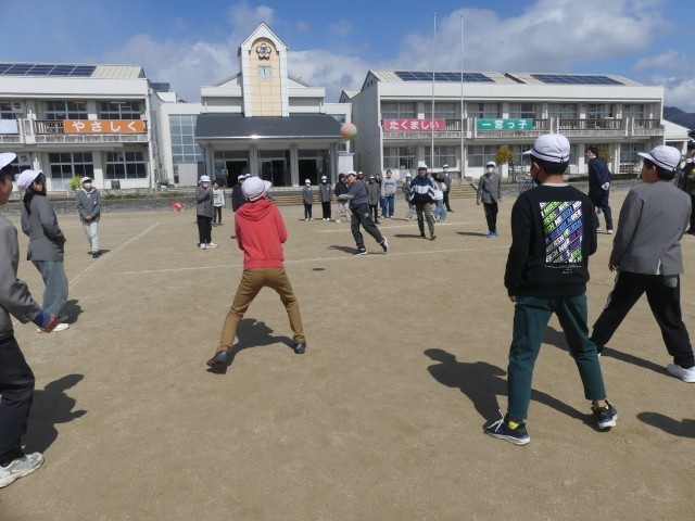 教室で盛り上がった後は、運動場へ移動して「ドッジボール」で汗を流しました。6年生の力強い投球に負けじと、5年生も必死にボールを追いかけます。どちらの学年も本気モード!真剣にプレーするからこそ生まれる、心地よい一体感が運動場に広がりました。卒業まで残りわずかとなった6年生にとって、後輩と過ごすこの時間はかけがえのない宝物になったはずです。また5年生にとっても、頼もしい6年生の姿を間近に見て、最高学年への意識を高める素敵な機会となりました。「笑顔あふれる、最高の1時間になりました!」卒業という節目を前に、学年を超えた絆がまたひとつ深まった、思い出深いプロジェクトとなりました。