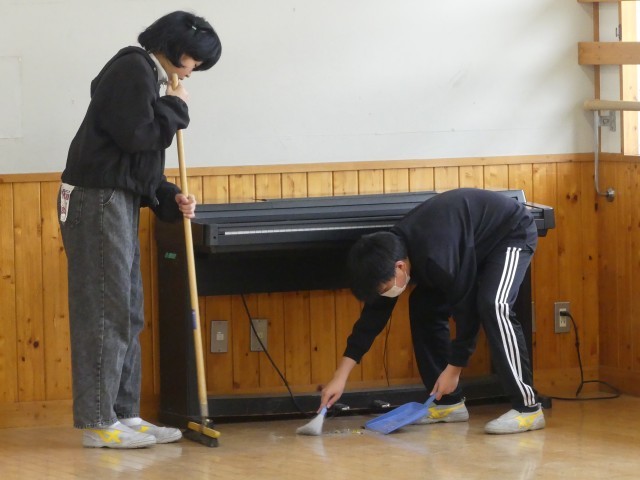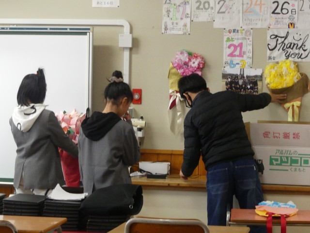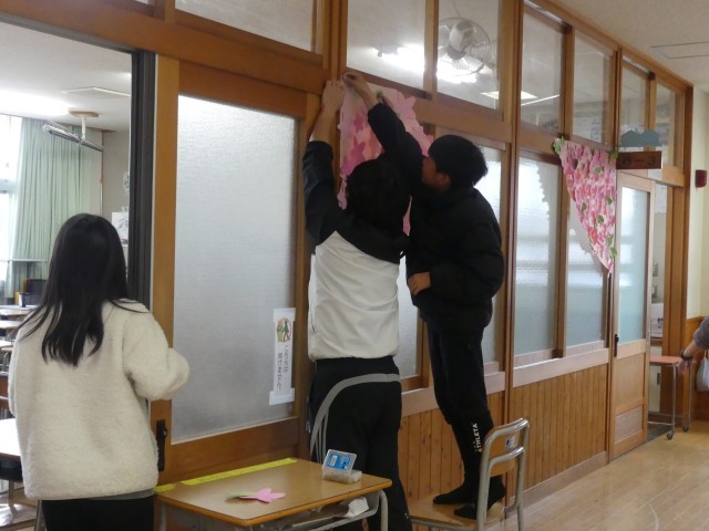 いよいよ明日は卒業式。 本日、他の学年が下校した後、5年生が卒業式の会場設営や校舎内の清掃、教室の装飾など、前日準備に取り組みました。これまで学校のリーダーとして引っ張ってくれた6年生への感謝の気持ちを込め、自分ができる役割を一生懸命にこなしていました。