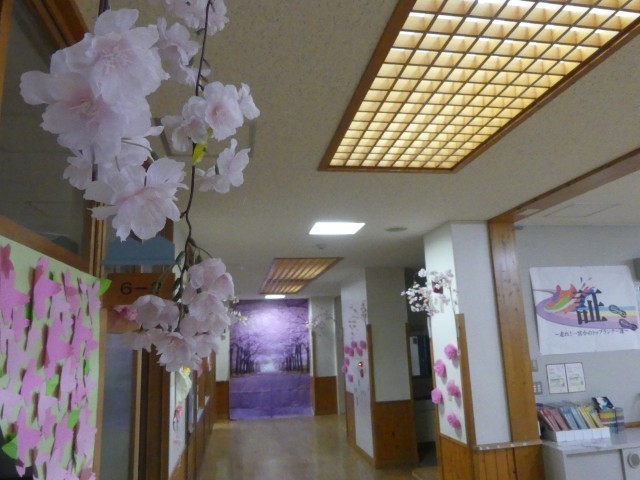 校舎を歩くと、あちこちに「おめでとう」の文字と、手作りの桜の花が咲き誇っています。明日の卒業式を前に、下級生や先生たちが心を込めて準備した掲示物で、学校中がお祝いムードに包まれました。6年生の皆さんがこの6年間で食べた給食の数は、なんと約1,140食だそうです。毎日通ったこの廊下も、今日はいつもより輝いて見えます。