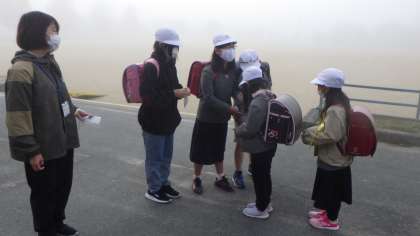 写真は、あいさつ運動の様子です。朝晩が寒くなり、どうしてもついつい下を向いたり、声が小さくなったりしています。あいさつ運動をきっかけに一宮小のみんなが目を見てしっかりあいさつができるようになってほしいです。