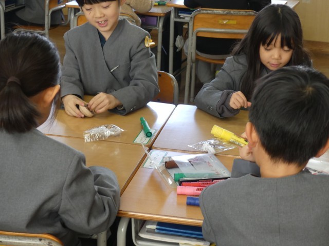 1年生の生活科の授業で、コマ回しに挑戦しました。まずは、真っさらな木のコマに色付けをするところからスタート!「回った時にどんな色になるかな?」「しましま模様にしてみよう」と、一人一人が思い思いのデ...