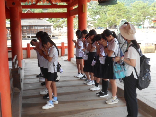 厳島神社の歴史や構造など、壮大さと緻密さに、こどもたちも驚いていました。本殿では、どんなことをお願いしたのでしょうか?