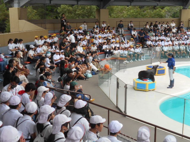 宮島水族館では、おもに瀬戸内海でみられる生物を目の前で見ることができました。アシカショーでは、ダイナミックな芸、インストラクターとのおもしろいかけあいなど、とっても盛り上がりました。