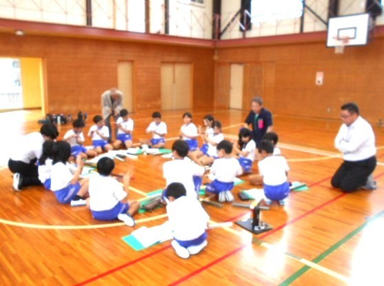 保存会のみなさんに笛の演奏を聞いていただき、より上手に吹く方法や速く吹くところ・ゆっくり吹くところなどを教えていただきました。