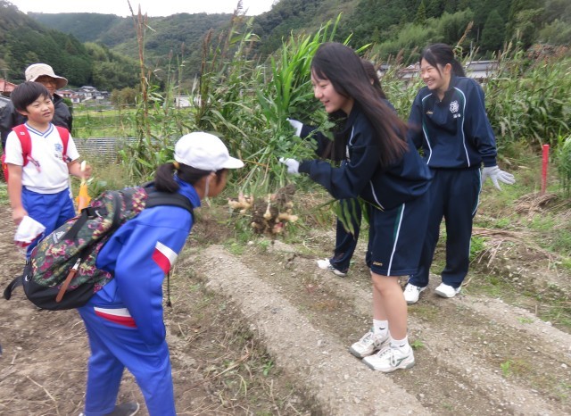 高田の「おいしい」を広げよう! ~津山東高校生が行うしょうが収穫の見学 3年生~