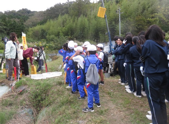 地域の民生委員さんといっしょに畑に到着すると、津山東高校のみなさんがあたたかくお迎えしてくださいました。