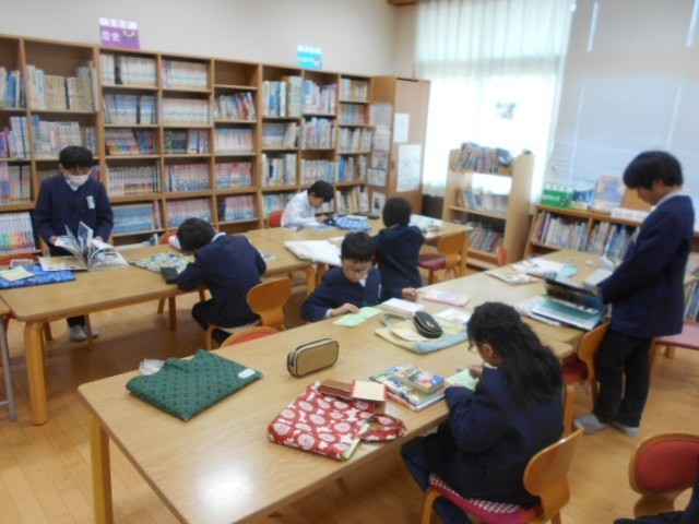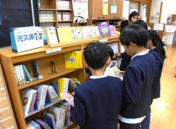 4年生は、みんなで本を借りに図書室に来ました。