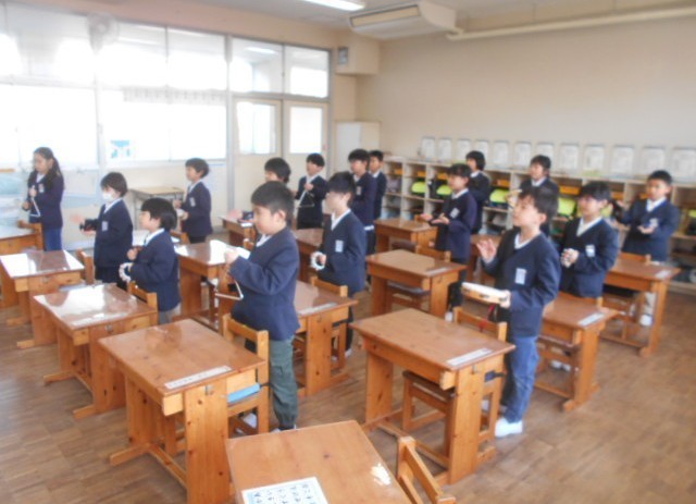 1年生は、先週から引き続いて、リズム打ちの勉強をしていました。