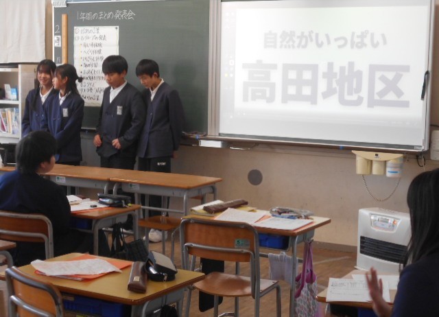 「高田の魅力を発信しよう」の成果を発表する(5年生)
