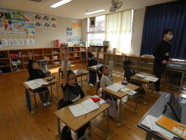 11月14日(金)☆理科の実験☆5年生が理科室で、「流れる水のはたらき」の実験をしていました。みんな興味深く実験をすすめ、分かったことをワークシートに書いていました。☆1年生生活科☆1年生は、綾部神社...