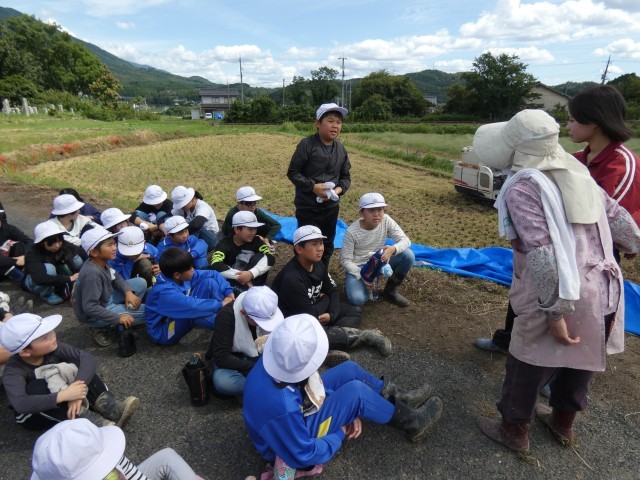 落ちている穂を最後まで大切に集めている子がいて感心しました。お礼や感想も進んで発表することができました。