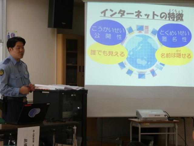 先週金曜日、津山サポートセンターと津山警察署生活安全課の方を講師としてお迎えして行いました。