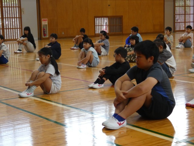 健康委員会から、『長座体前屈』レベルアップ作戦の説明がありました。