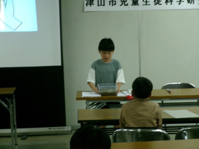 7日(火)津山市科学研究発表会が開催され、代表として3年生児童が参加しました。