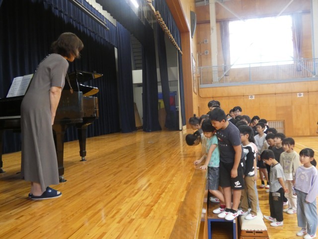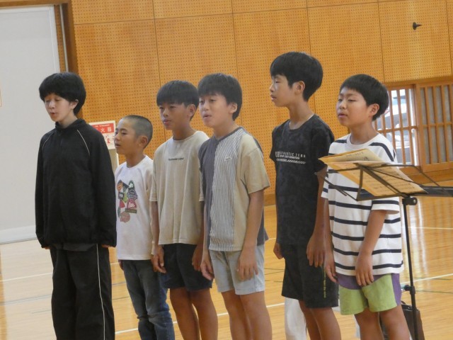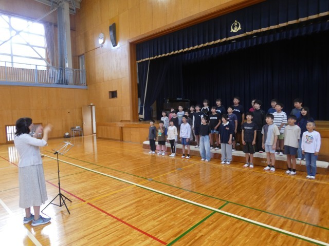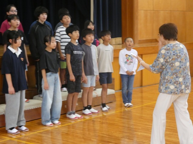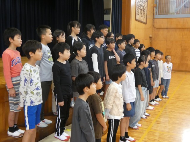 全校では『校歌』『ありがとうの歌』、3~6年は『この星に生まれて』の練習をしました。