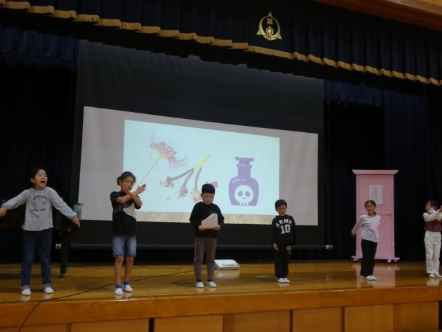 国語・算数・生活・総合・音楽など今まで学習してきた内容を劇や発表形式で伝えます。