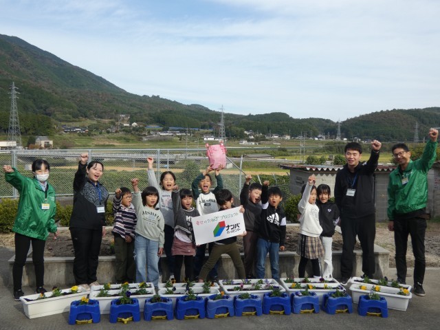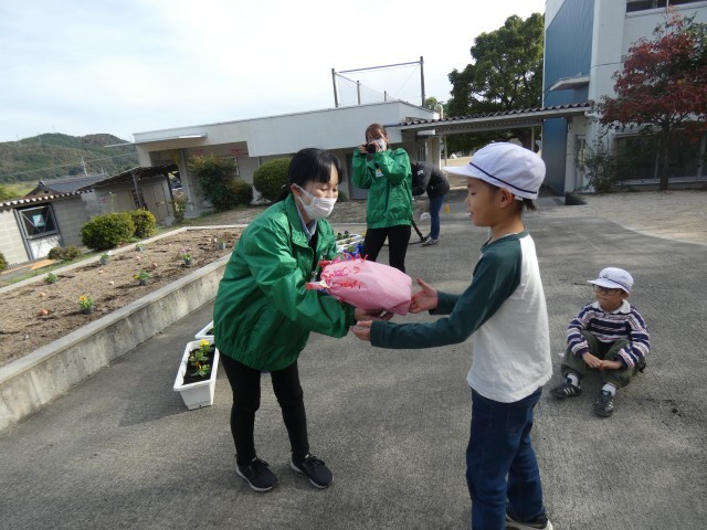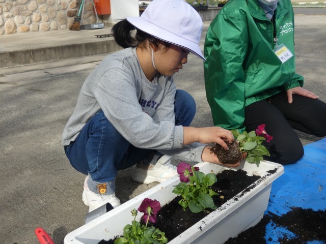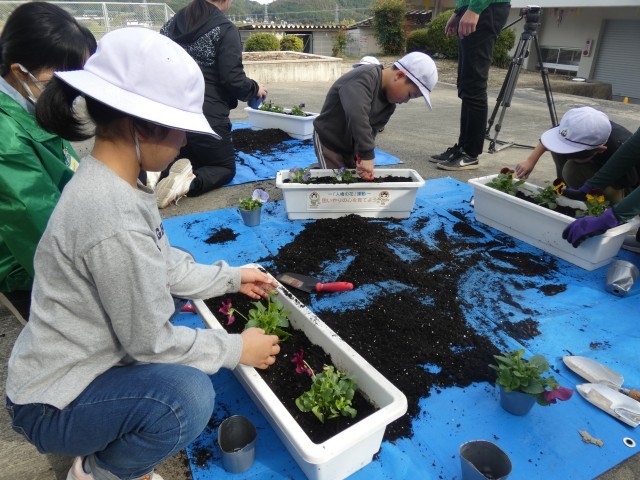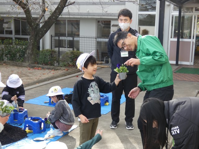 ナンバ様のご協力により、1・2年生が生活の時間にパンジーを植えました。