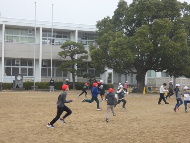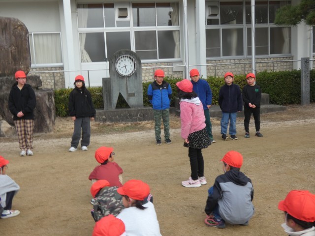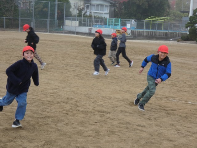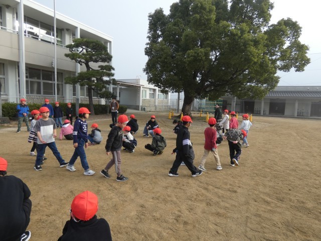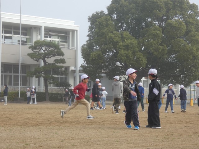 寒い朝でしたが、全校で「ふえ鬼」をしました。