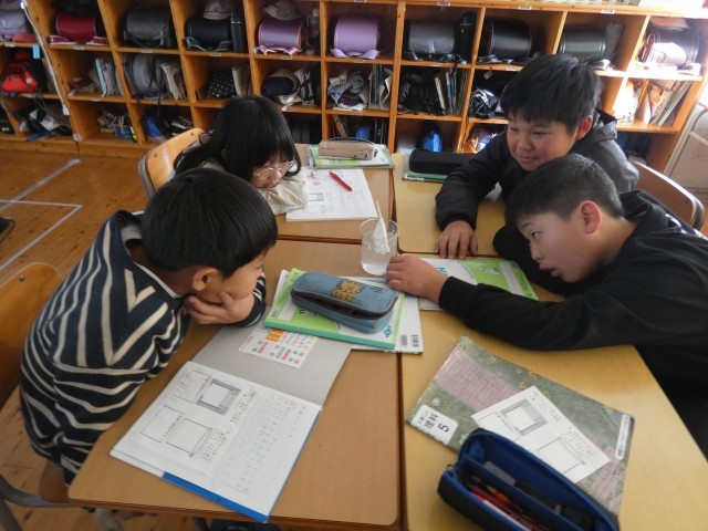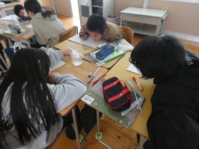 「上から下へ」「広がるように」「油みたいに」・・・とける様子を表現していました。