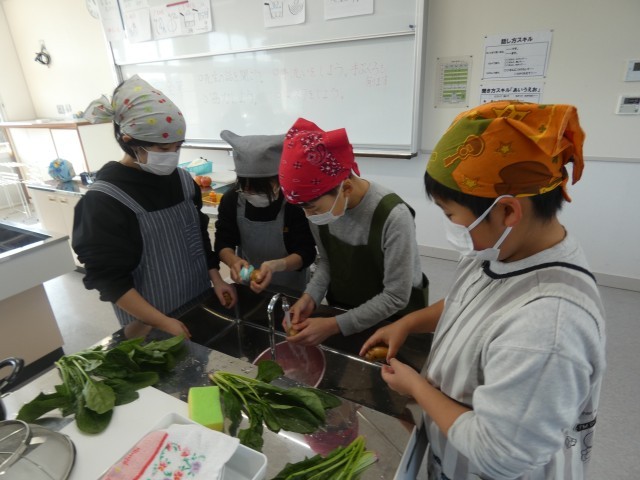 「ほうれんそうのおひたし」と「ゆでいも」に挑戦していました。