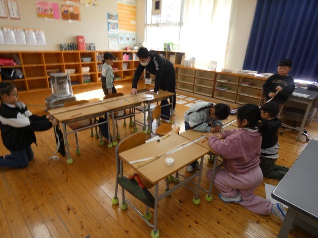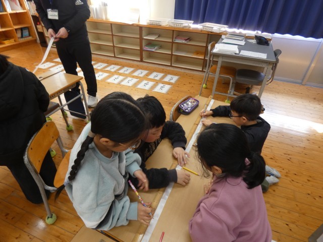 「3mぴったりの長さ」を友達と協力して学習していました。