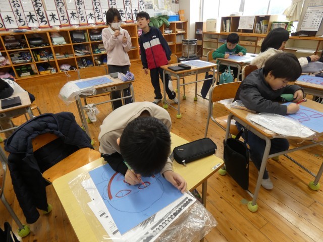 1・2年生は紙版画、3・4年生は木版画に挑戦します。