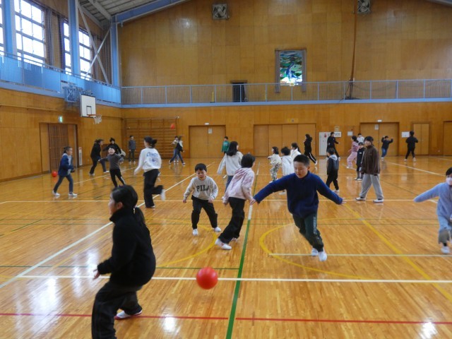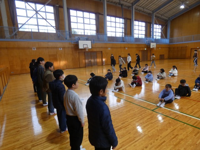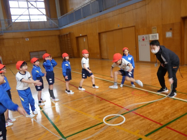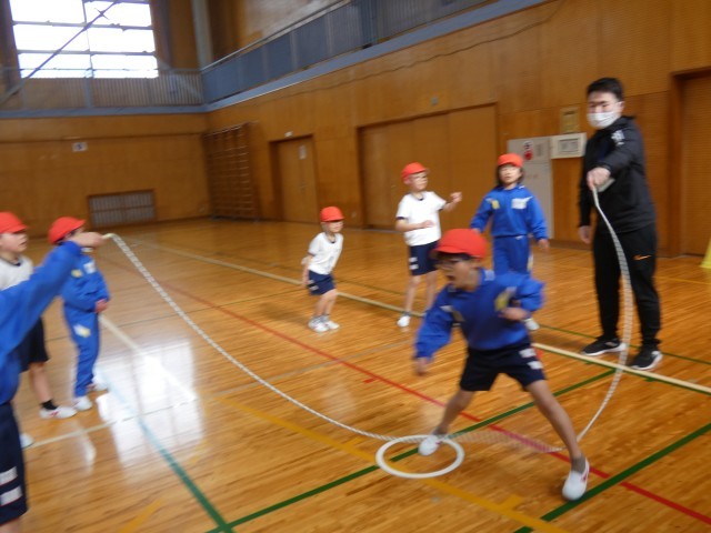 1・2年体育;「8の字跳び」をしていました。前より上手になっていました。