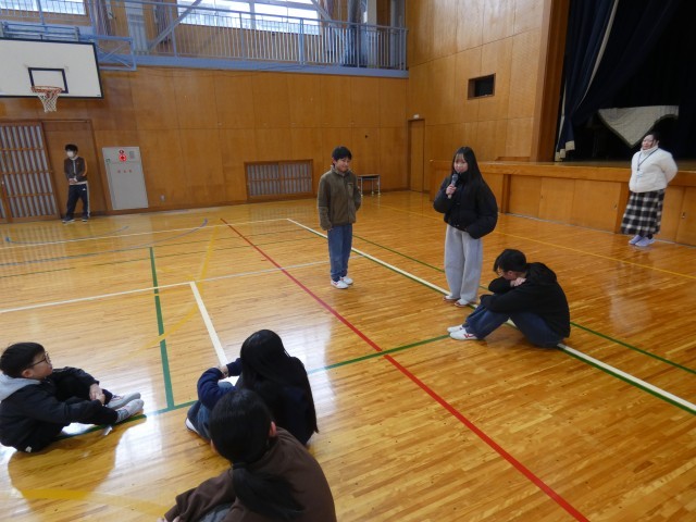 運動後は「やさしさキラリ☆」の発表です。見つけたやさしさをその人に伝えた後、全校に向けて発表しました。