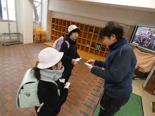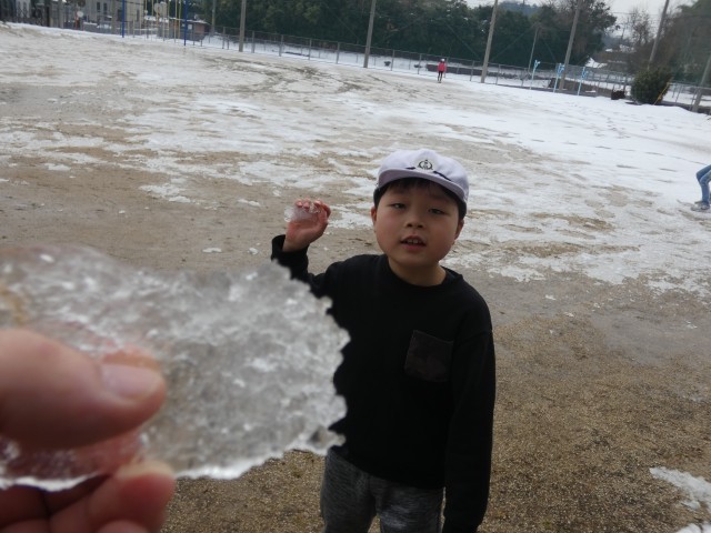 今朝は路面が凍っていて、すべらないよう気を付けて登校していた子どもたちです。