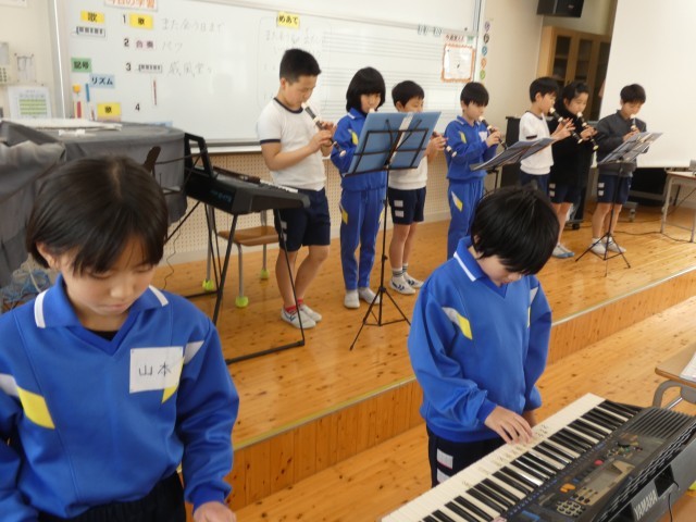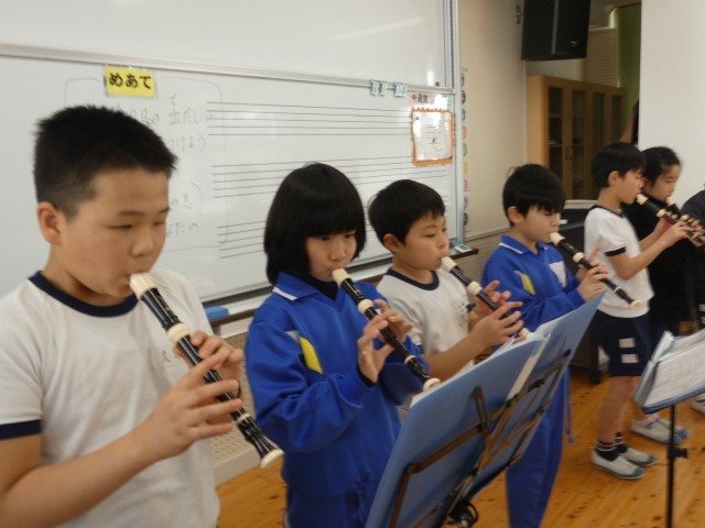 3・4年生が、音楽で「パフ」の合奏練習をしていました。前よりもぐんと上手になっていました。