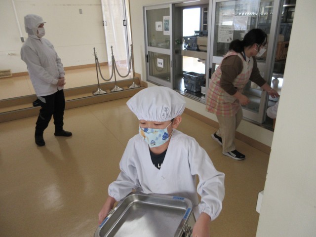 1年生の給食当番がとても上手になりました。素早く着替え、給食の先生に「いただきます」とあいさつをして、重い食器を運び、みんなで協力して配膳をします。苦手な食べ物も残さず食べるようがんばっています。食べる量もだんだん増えてきて、大きくなったなあと感じています。